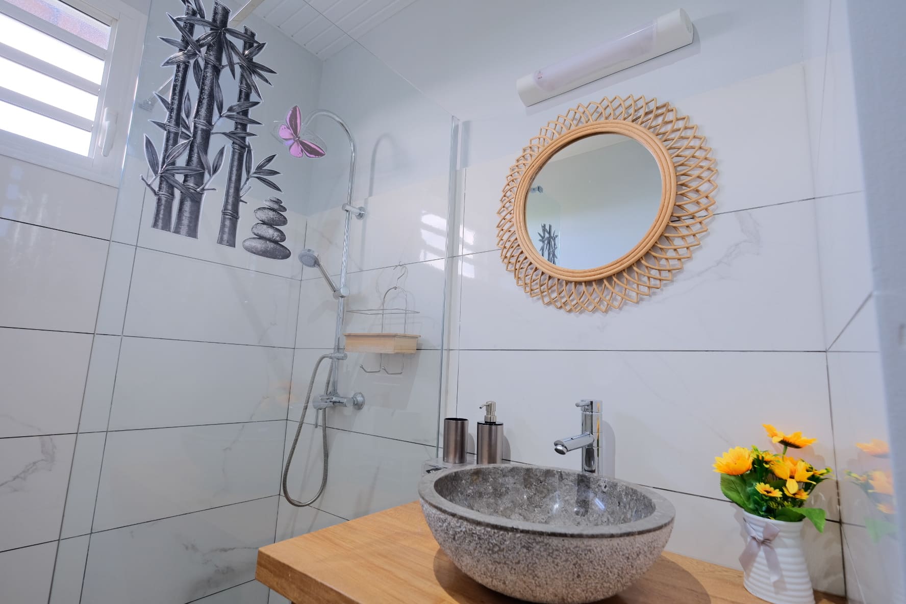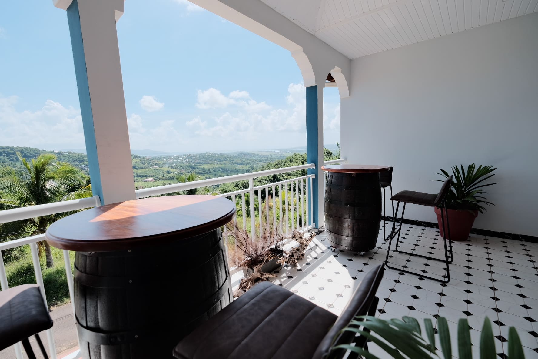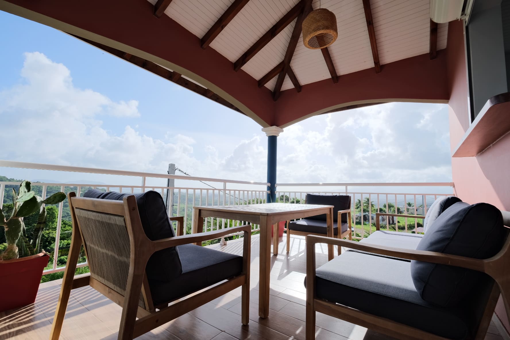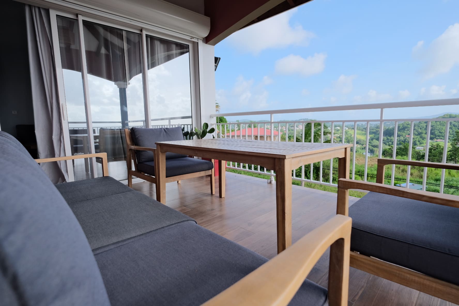 La suite Piton est celle qui offre la plus belle vue. Une vue à 280° sur les pitons du carbet, la mer et on peut y voir de très beaux couchers de soleil. La décoration a été choisie avec goût. Elle est épurée, d’inspiration créole et élégante. Il s’agit d’un T3 avec 2 chambres, une salle de bain avec toilette indépendante, un salon spacieux, une cuisine tout équipée et un balcon composé d’un salon extérieur où vous serez confortable pour dîner face au coucher du soleil.