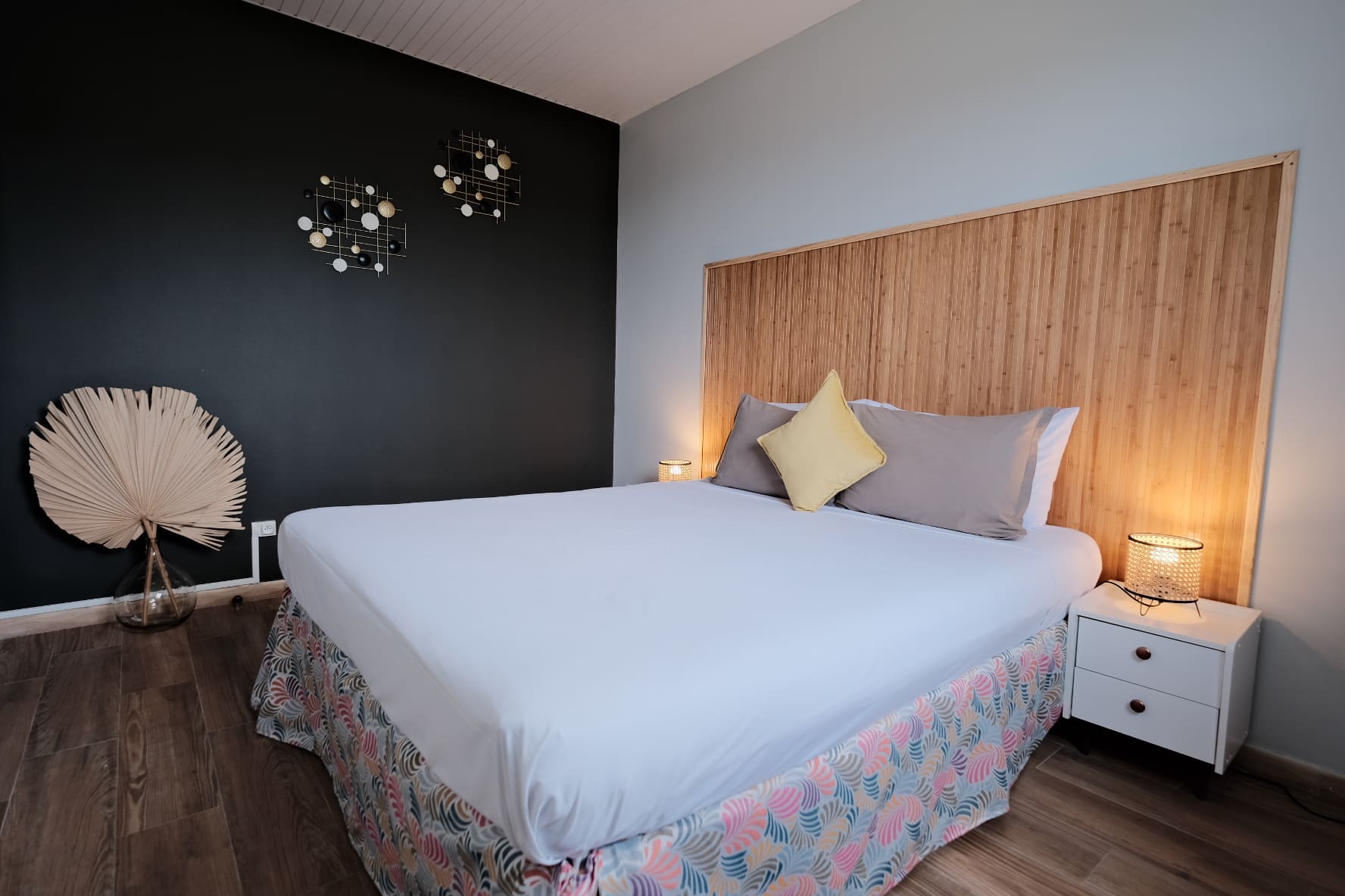 Toutes les pièces de la suite sont spacieuses et décorées avec goût. Elle est composée d’un salon, une cuisine chic en quartz tout équipée.
